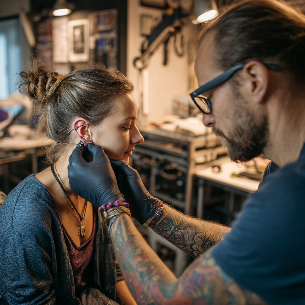The piercing itself takes just seconds, and many clients are pleasantly surprised at how quick and manageable the process is. I guide you through positioning and breathing techniques to keep you as comfortable as possible throughout.