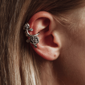 The flat ear piercing sits on the flat area of the upper ear cartilage, creating a sleek and modern look that’s both subtle and stylish. It’s often adorned with studs or small hoops that follow the natural curve of the ear, making it a versatile option for personal expression. Healing usually takes around 6 to 9 months, as it passes through cartilage, and proper aftercare is essential for a smooth recovery. This piercing is perfect for anyone looking to add a unique yet wearable statement to their ear.