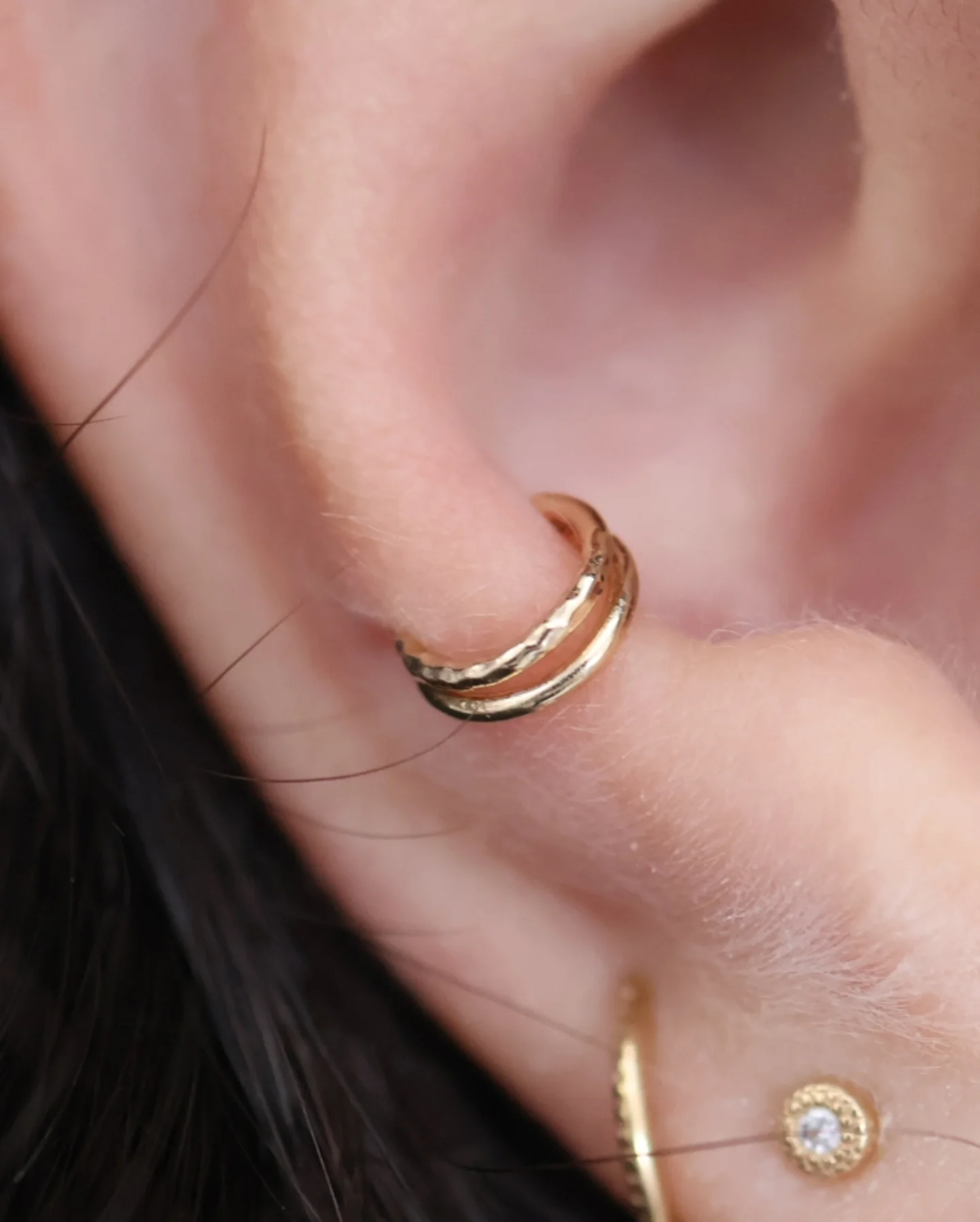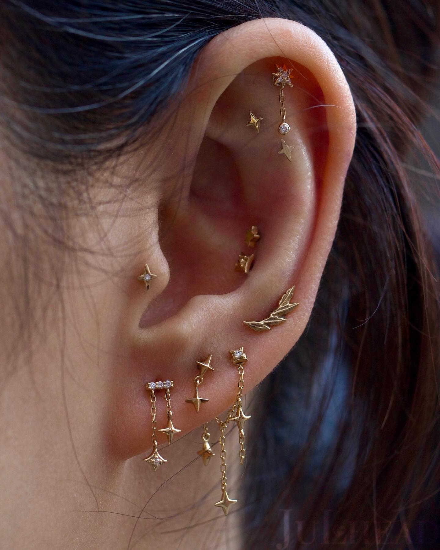 The standard lobe ear piercing is the most common and widely recognized type of piercing, typically done on the soft lower part of the ear. It’s often the very first piercing people get and is loved for its quick healing time, usually 6 to 8 weeks, compared to cartilage piercings. This versatile piercing can hold everything from small studs and hoops to dangling earrings, making it easy to switch up your style. Because of its simplicity and minimal discomfort, the standard lobe is the perfect starting point for building a curated ear.