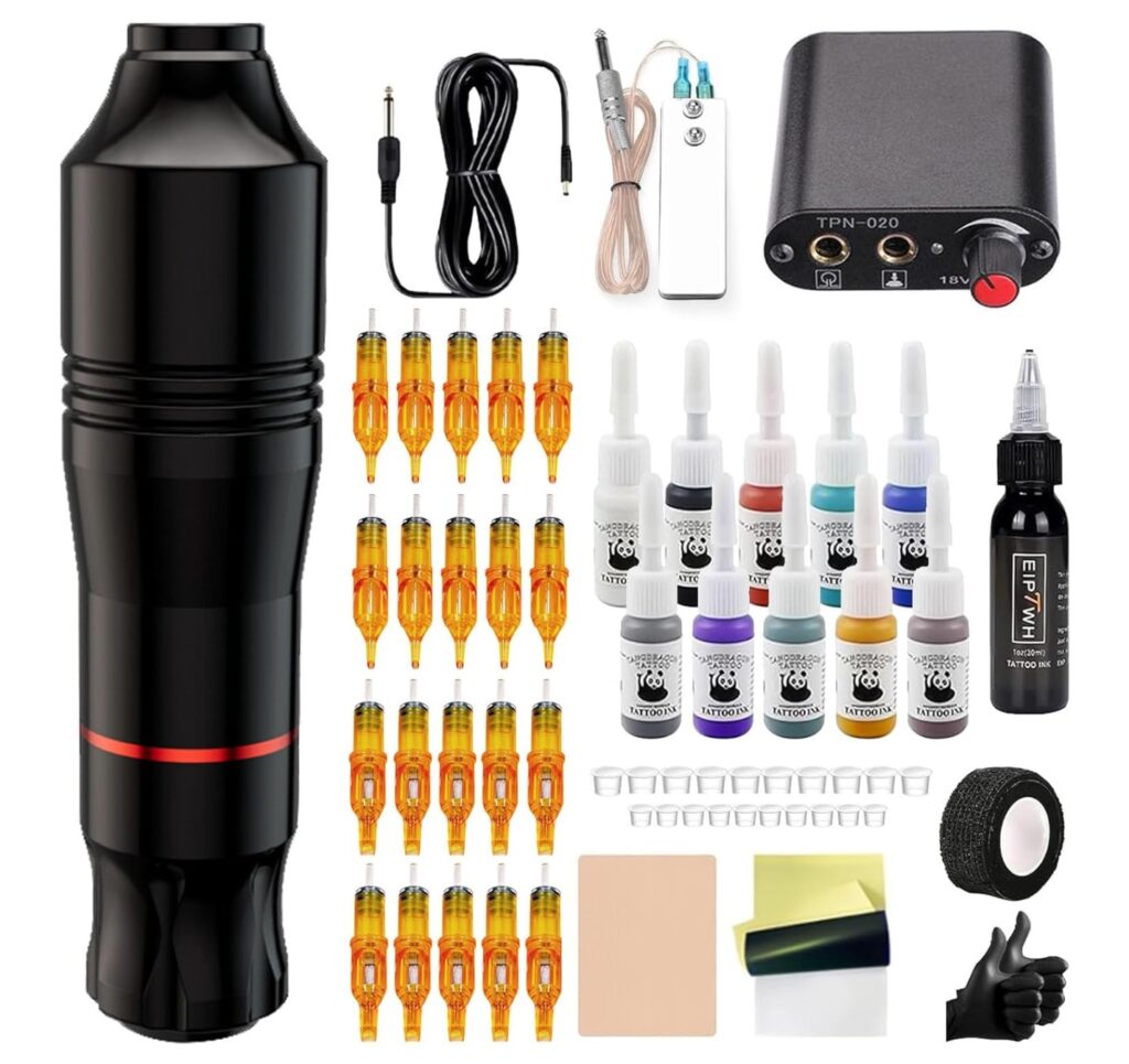 - Complete starter kit with all essential tattoo supplies